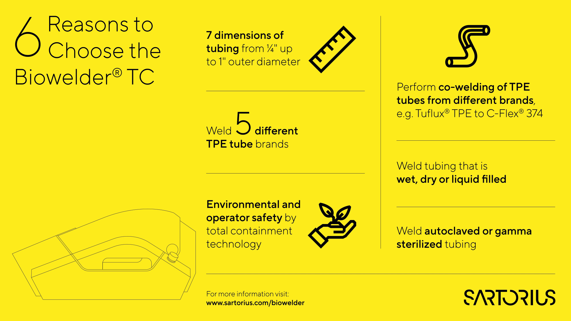 從小型上游工藝到大型商業(yè)化生產(chǎn)中的最終灌裝應用,Biowelder? TC能夠適應不同的連接需求